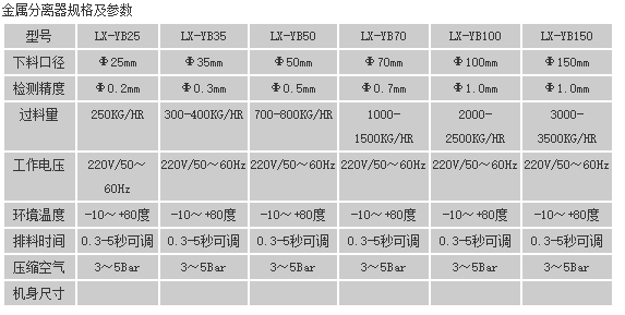 原料從料斗或送料器自由下落進(jìn)入金屬分離器,如果沒(méi)有金屬雜質(zhì),原料會(huì)直接通過(guò)金屬分離器流向下端的出料口。如果檢測(cè)器檢測(cè)到原料中含有金屬,那么控制器立刻啟動(dòng)分離板將金屬物和部分原料一起導(dǎo)向側(cè)面的排料口,然后分流板迅速恢復(fù)至正常的位置,分流板速度可調(diào),金屬分離器的檢測(cè)精度也可根據(jù)生產(chǎn)需要調(diào)節(jié),最小可檢測(cè)并分離出Φ 0.2mm的金屬顆粒。